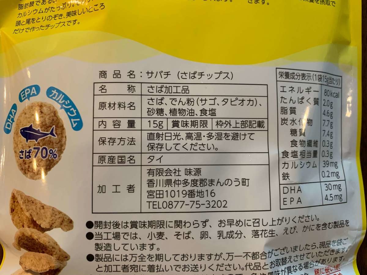 こちらのチップスの一番の特徴は、なんとサバを70%使用していること!