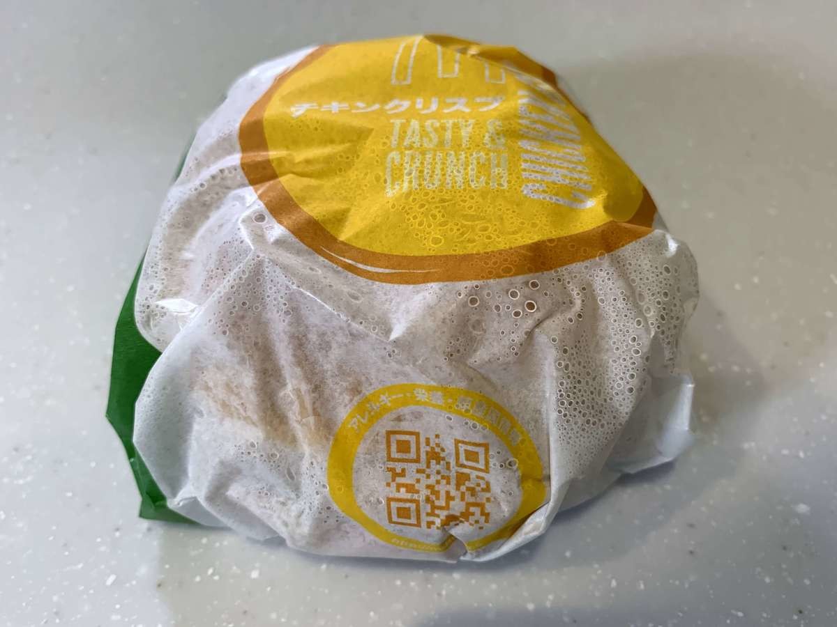最後はサクサクした衣がおいしいチキンとレタス、マスタードがはさまった「チキンクリスプ」で試してみます。紙包みのまま冷凍室に入れて一日冷やしました。