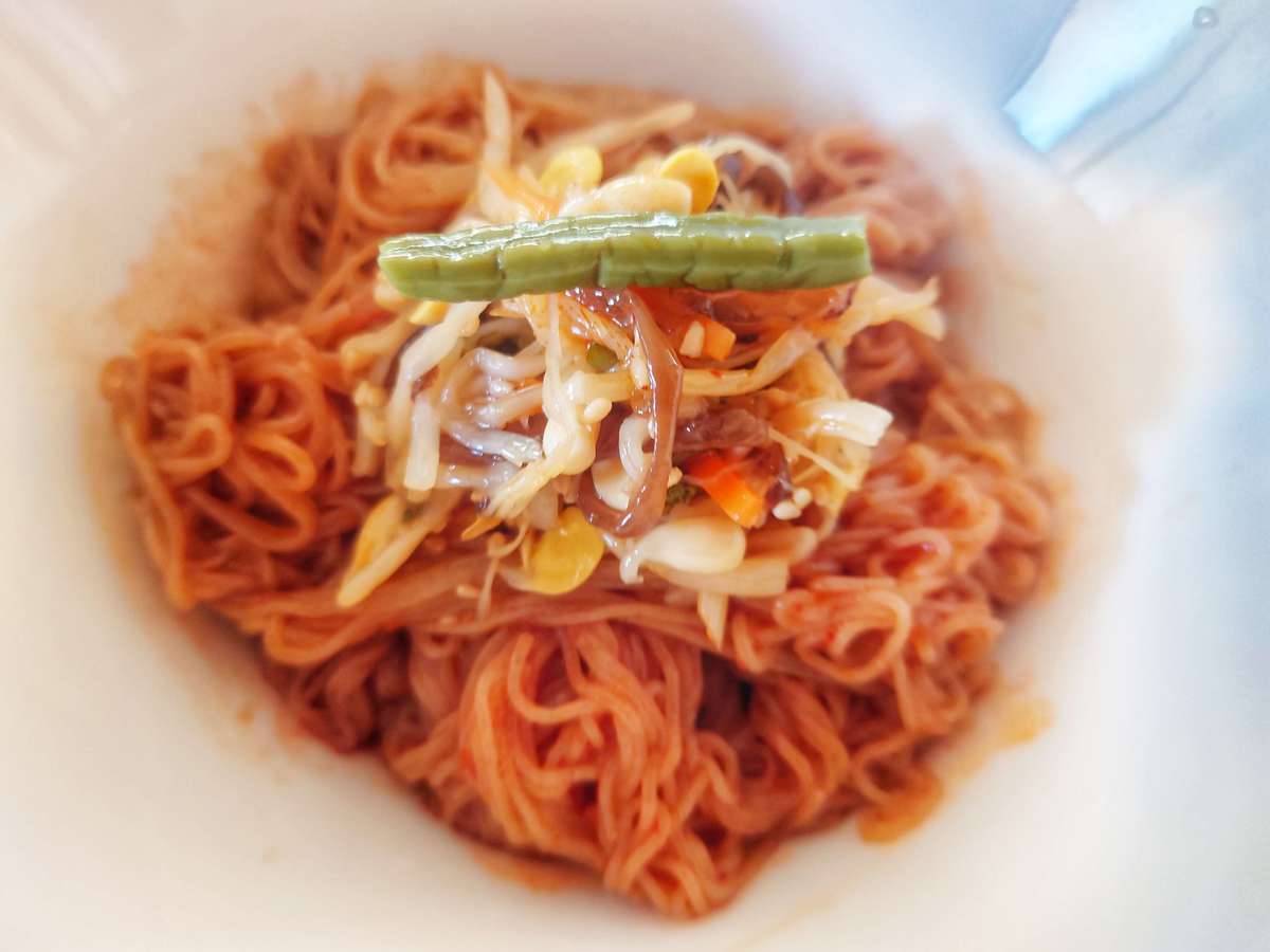 パッケージからは料理研究家のアレンジレシピへのバーコードもありとても親切です。 コチュジャンをきかせたピリ辛ビビン麺です。