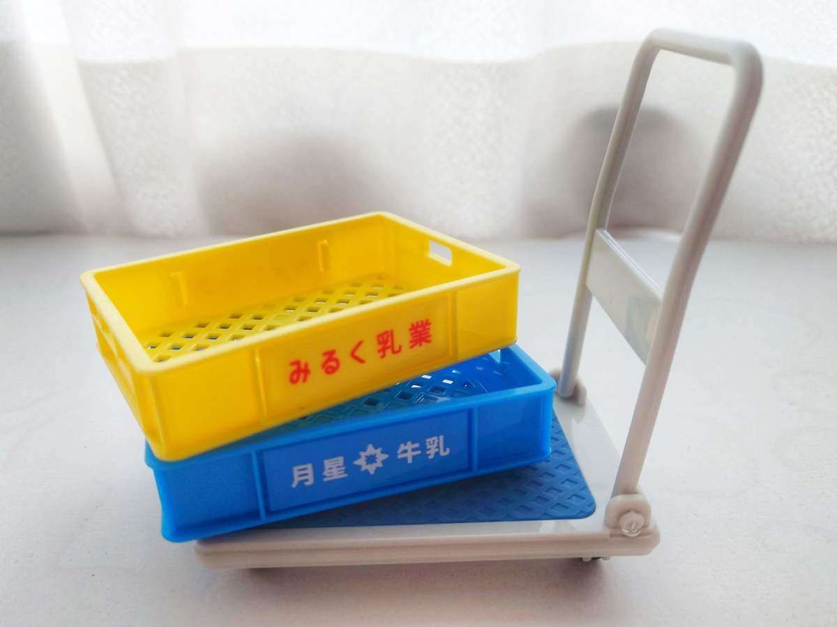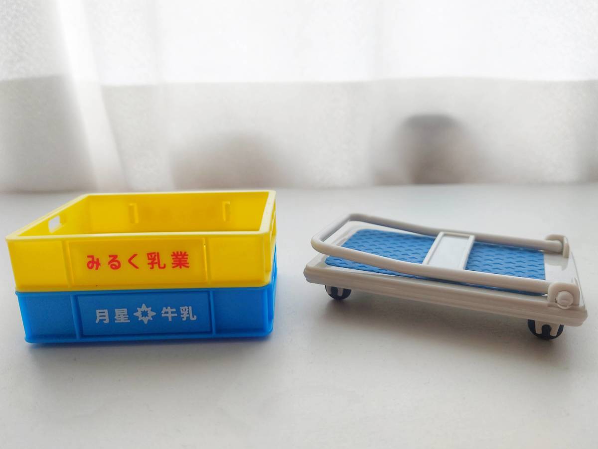 このようにコンテナを乗せるのにも丁度いいサイズで、牛乳屋さんごっこもできてしまいます。