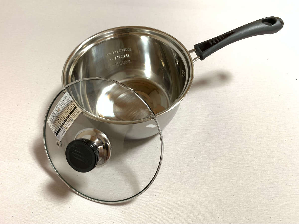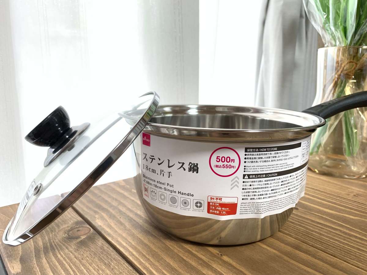 一人暮らしの方にもおすすめなのが、18cm 片手ステンレス鍋(550円 税込)。