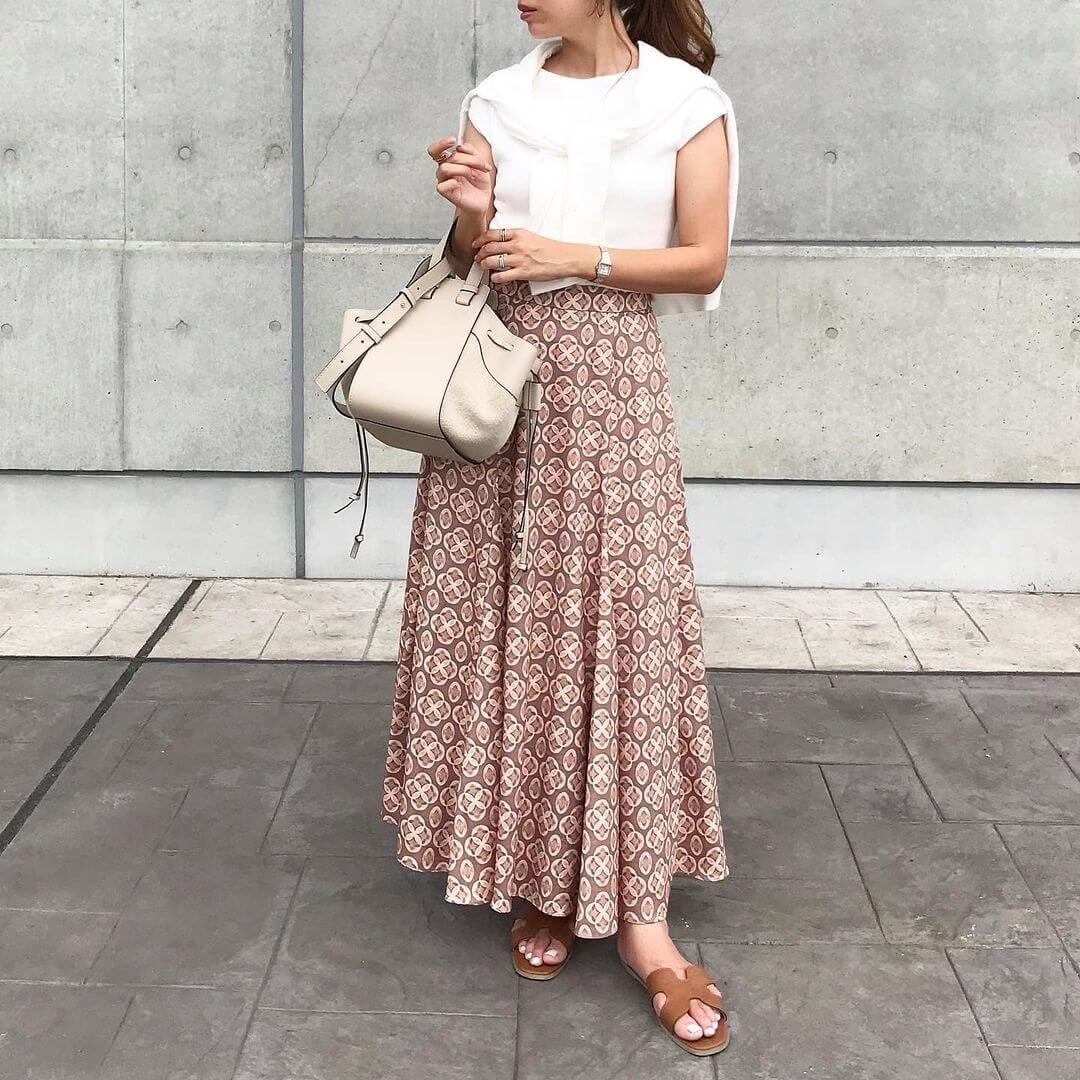 タイル柄スカートと着こなす大人フェミニンコーデ