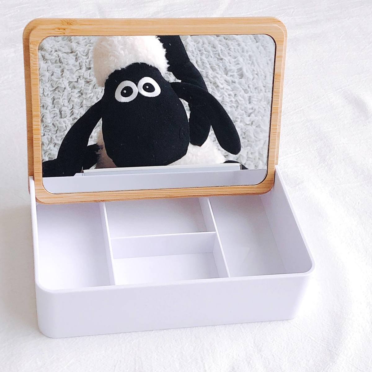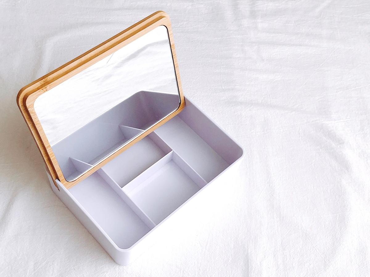 仕切りがあるので小物収納にぴったりで、鏡を見ながらメイクしたり装飾小物も選べ「ひとつ2役」をこなしてくれる便利グッズです。