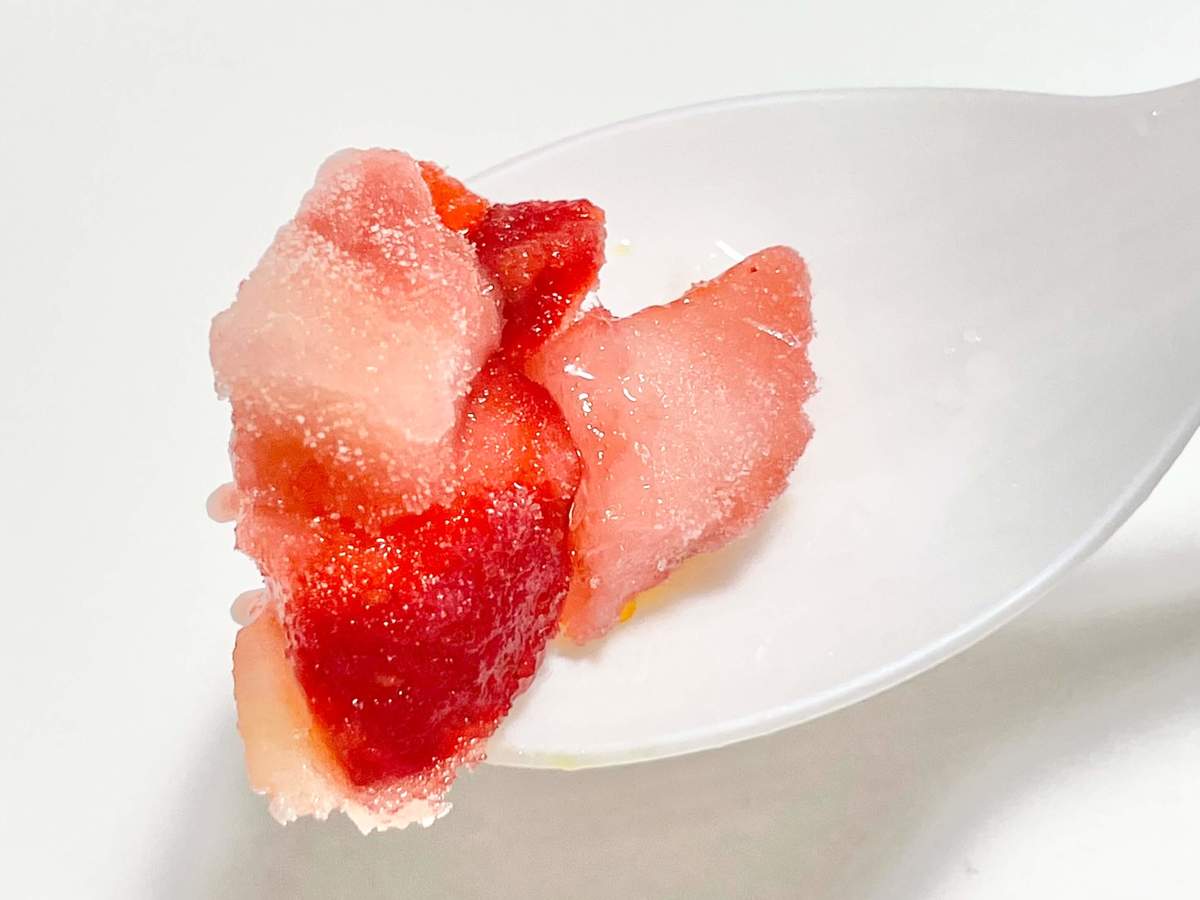 だんだん溶けてくると果肉が柔らかくなり、ジューシーさが増します。