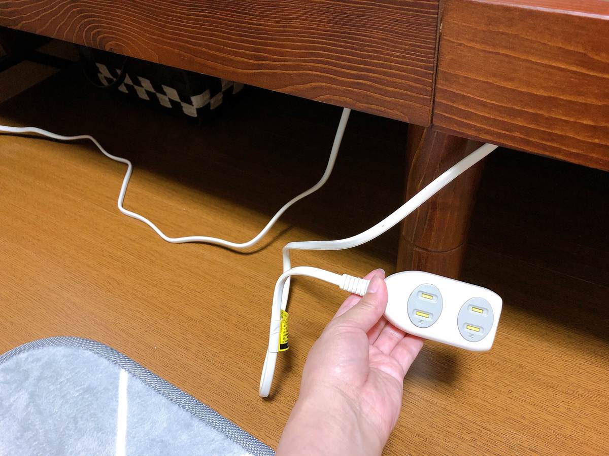 我が家のベッド下に「だらーん」と伸びた電源コード。このコードが見えなくなると、生活感もなくなりかなりスッキリしますよね。