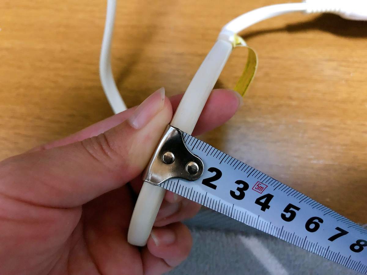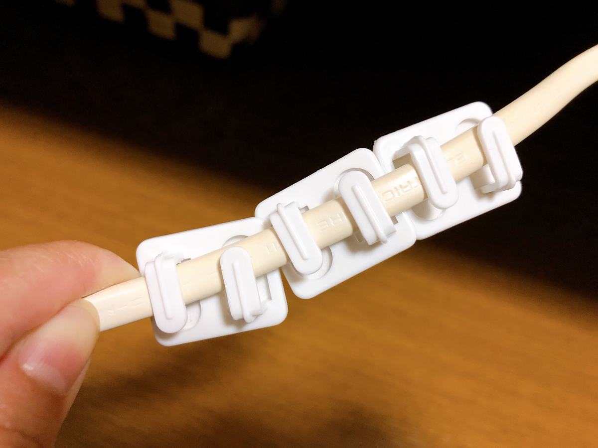 1つの大きさは、約2.7cm×2.2cmと小さいので、エアコンなどの大きめのコードは使えず、コード幅8mm・厚み5mm以下のものに対応しています。