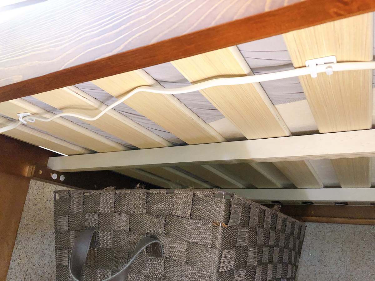 今回は、重さが掛かりやすいベッド裏でも落ちる事なく、コードを綺麗に隠すことができました!
