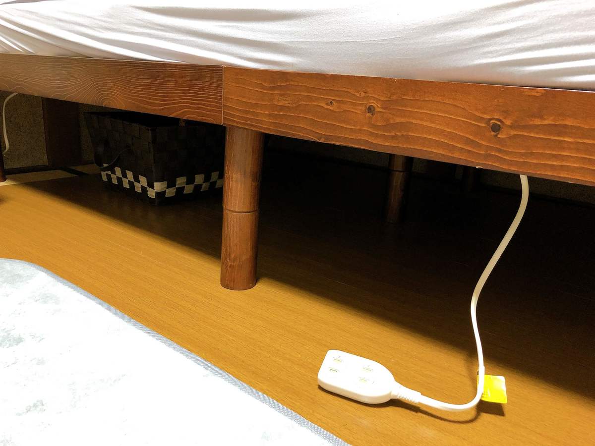 ベッドの下は狭いですが、ズボラな私でも簡単にコードの整理を行う事ができました!