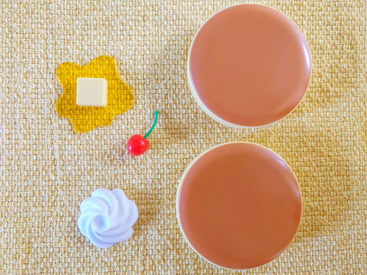 ちなみにパンケーキセットの内容はパンケーキ2枚とバター、ホイップ、チェリー、フライ返し。パンケーキは直径約9cmです。