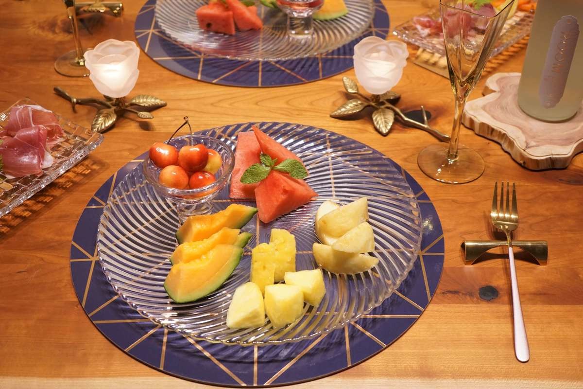 プレイスマットにゴールドが入っているので、お皿の下に敷くだけで高見えに!