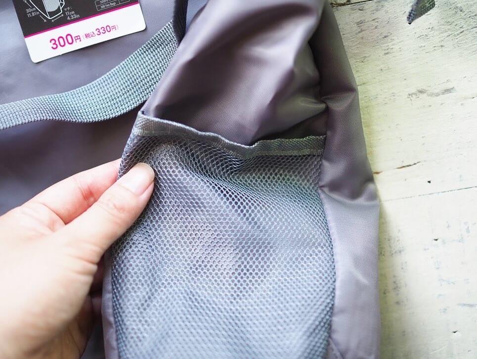 両サイドにはメッシュポケットがあるのでペットボトルや水筒などを入れておくこともできますよ。