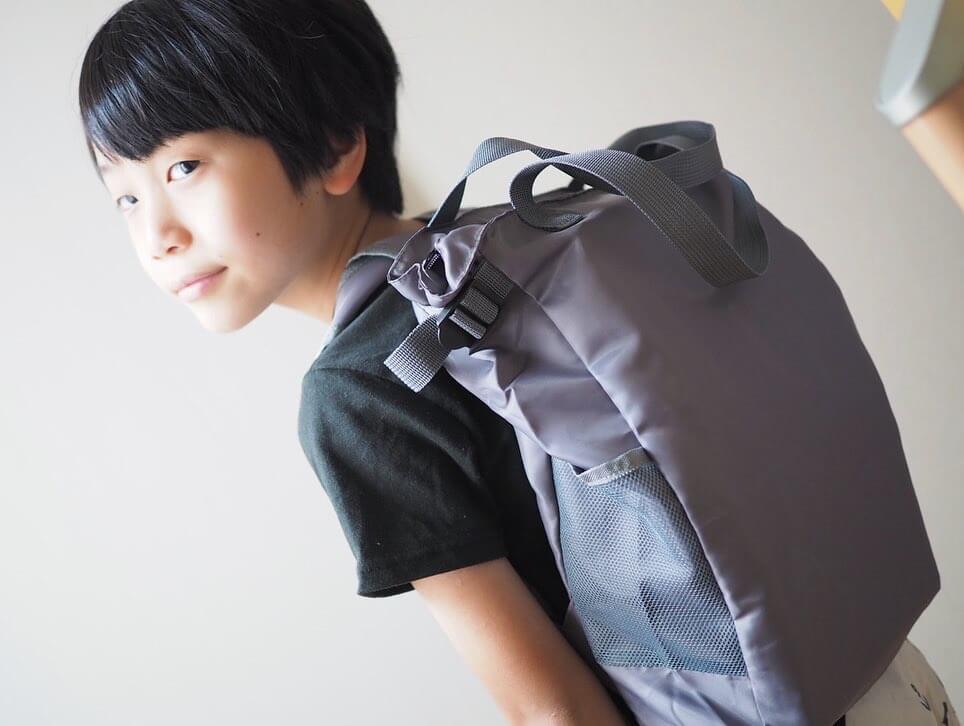 シンプルな無地グレーのリュックは持ち手付でトートバッグとしても使えるスグレモノ。