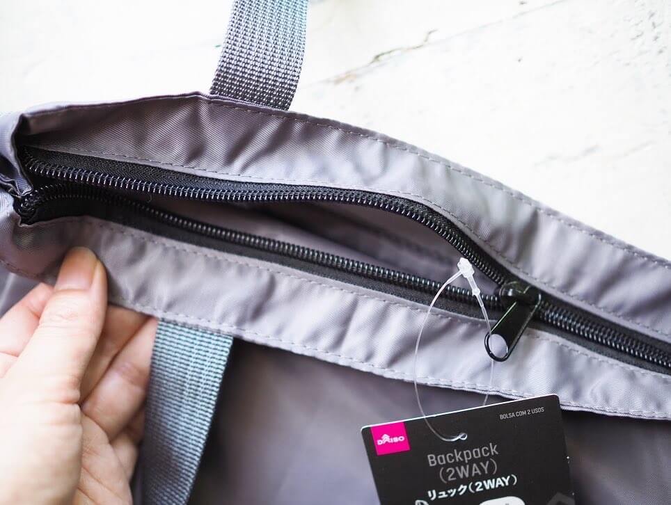 ファスナーで簡単に開閉できて、荷物も飛び出さず安心です。