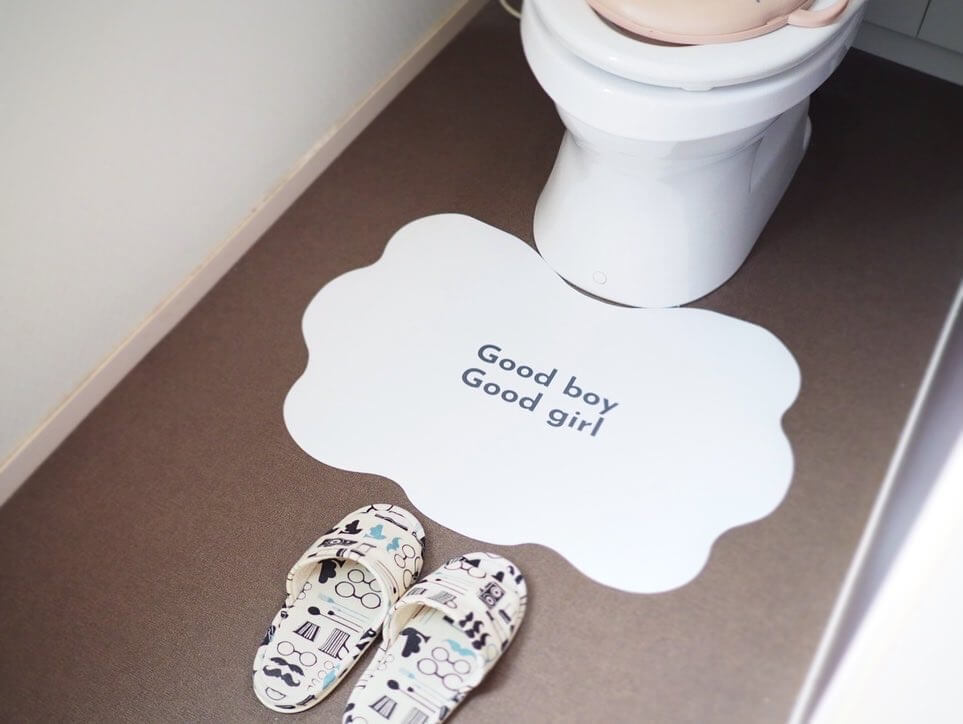 シンプルなモノトーンでふわふわの雲の形をしたかわいいトイレマットは、トイレトレーニング関係なしに設置したいビジュアルです♪