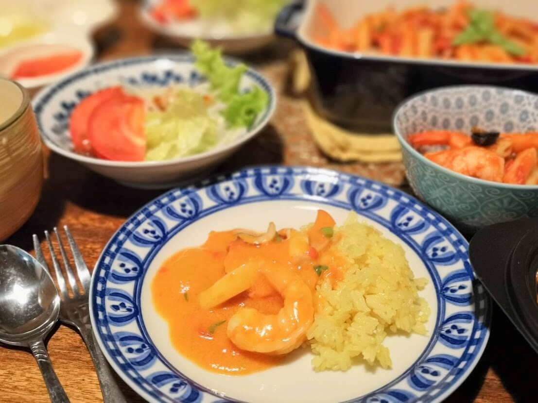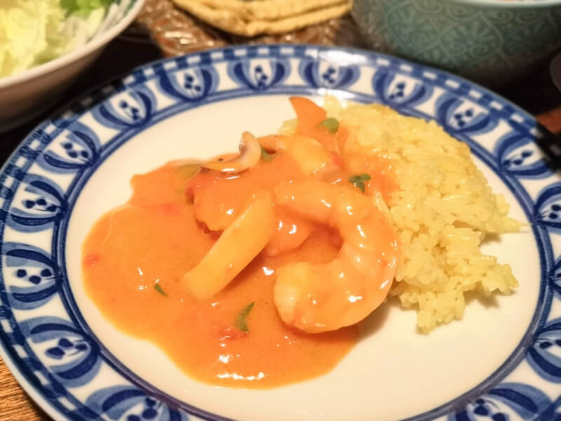 これをサフランライスと食べるとすごくおしゃれな洋風ご飯といった感じで、洋食屋さんの味。 お家に居ながら外食しているような気分です。