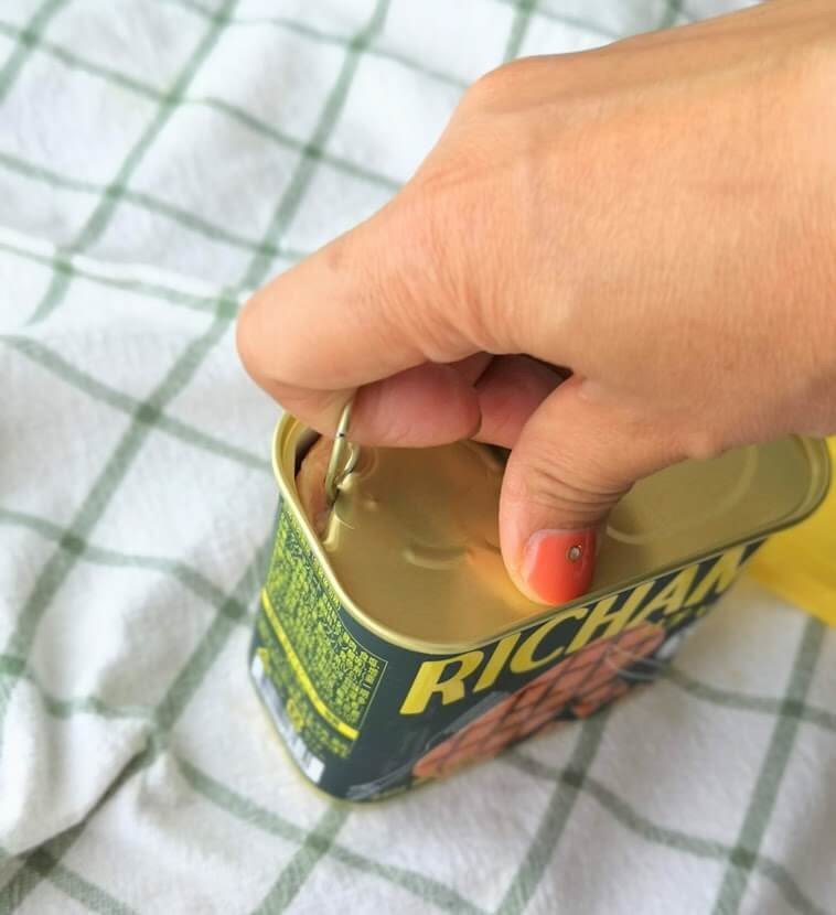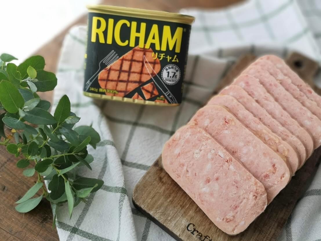 コストコに入荷した韓国の缶詰『リチャム』は、いわゆるランチョンミートという種類の缶詰です。 日本では沖縄でよく食べられている食材の一つで、香辛料などを加えた挽肉を金型に入れて固めたものを、オーブンで加熱後に冷却して保存性を高めたホームメイド・ソーセージの一種です。