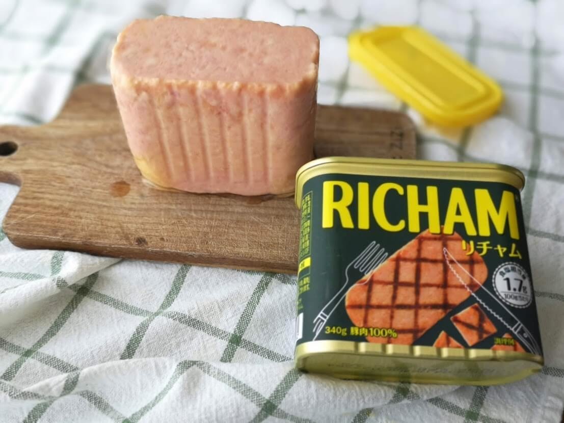 個人的にはスパム減塩と大きく味の違いは感じませんでしたし、スパム減塩と比べてもしょっぱさは感じず。どちらかといえば、リチャムのほうが粗挽き感があり美味しく感じました。
