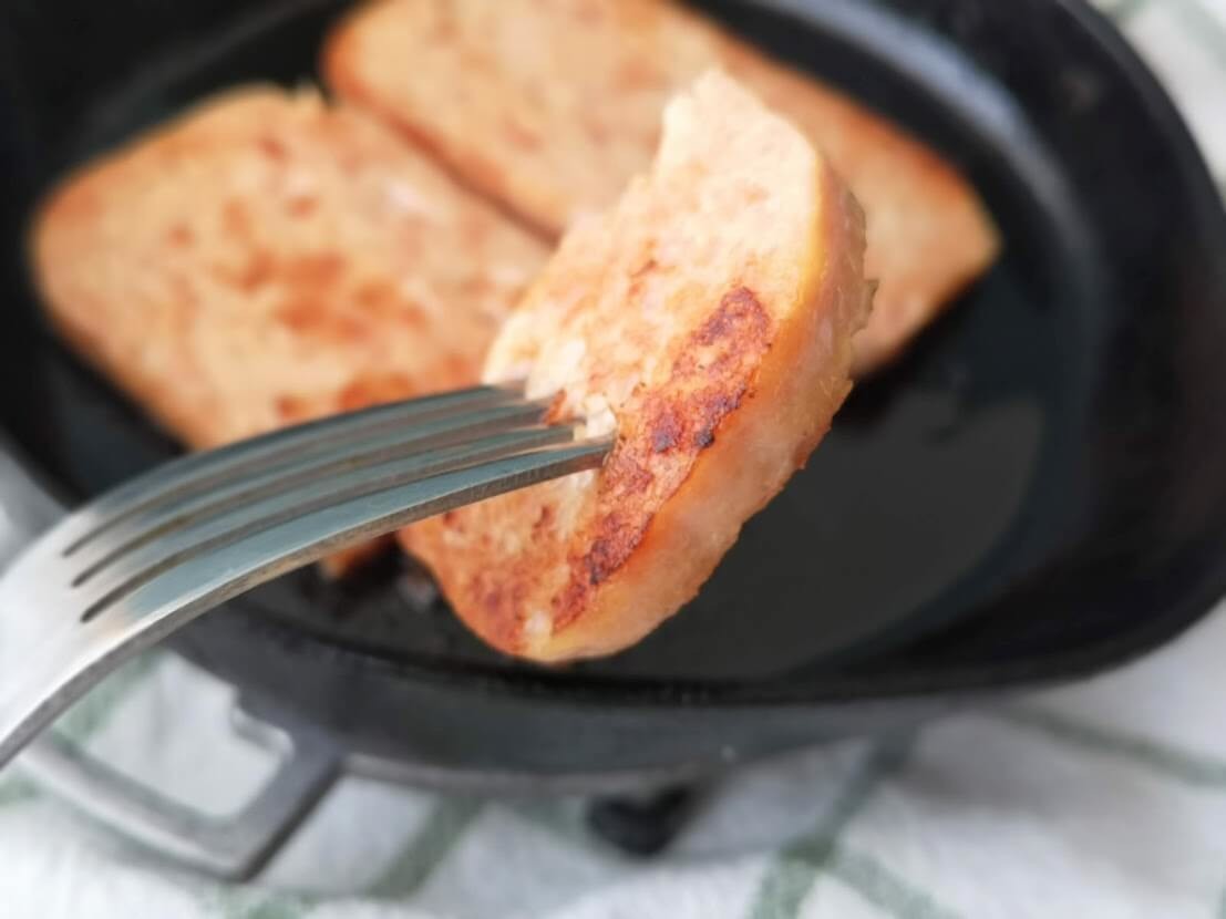 ランチョンミートは缶から出してそのまま食べることもできますが、焼いて食べるのが一般的です。