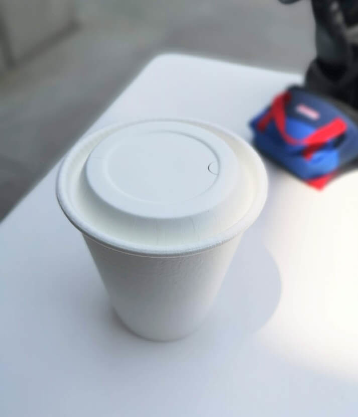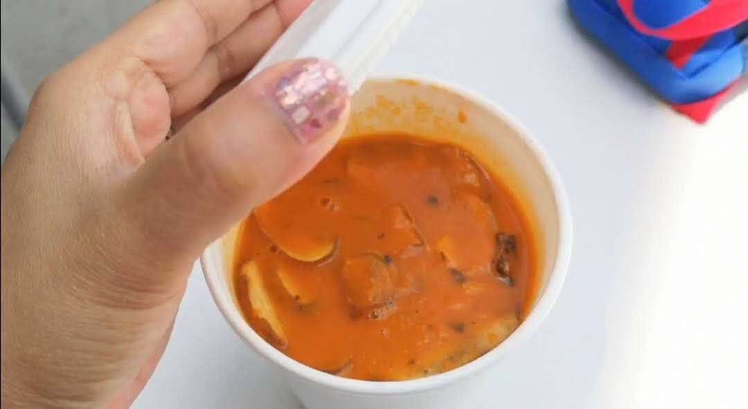 コストコのチキントマトビスクは、耐熱のカップにいれてフタをして提供してくれます。