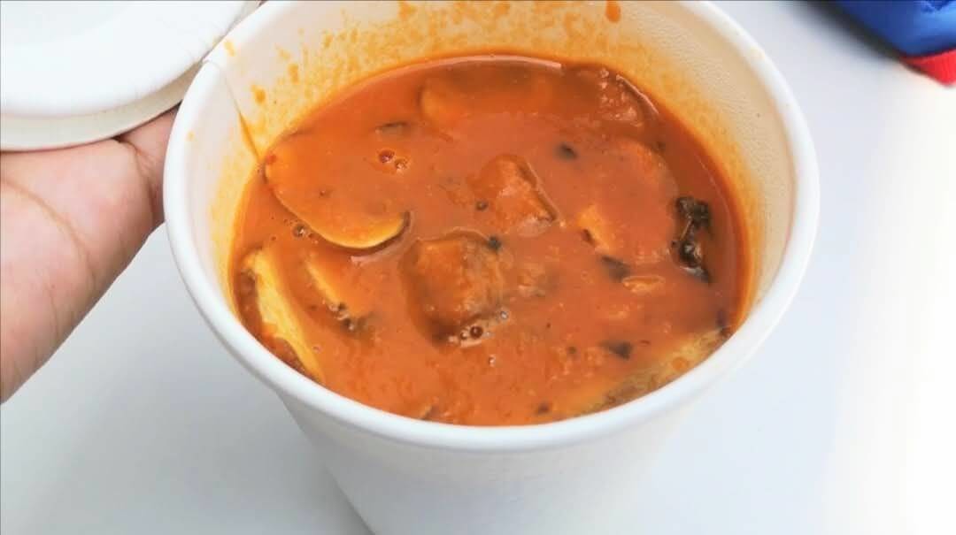 スープ自体はアツアツというほどでもなく、まさに食べごろの温度で提供されており、容器の8分目ほどまでたっぷりと注がれています。