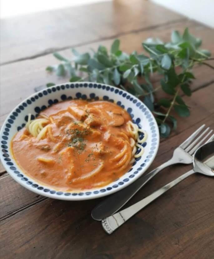 このチキントマトビスクですが、おすすめアレンジはパスタ!