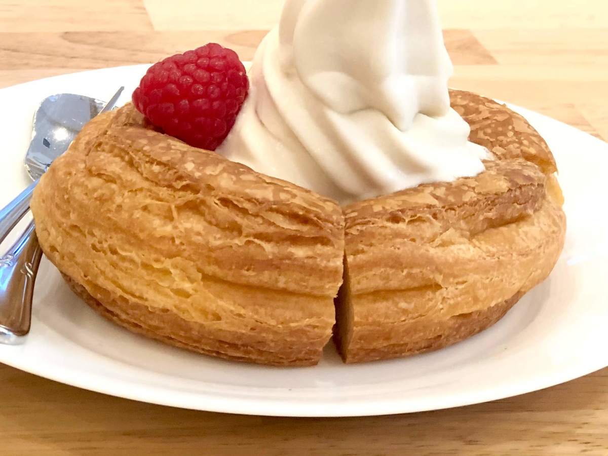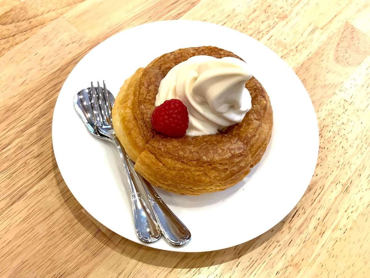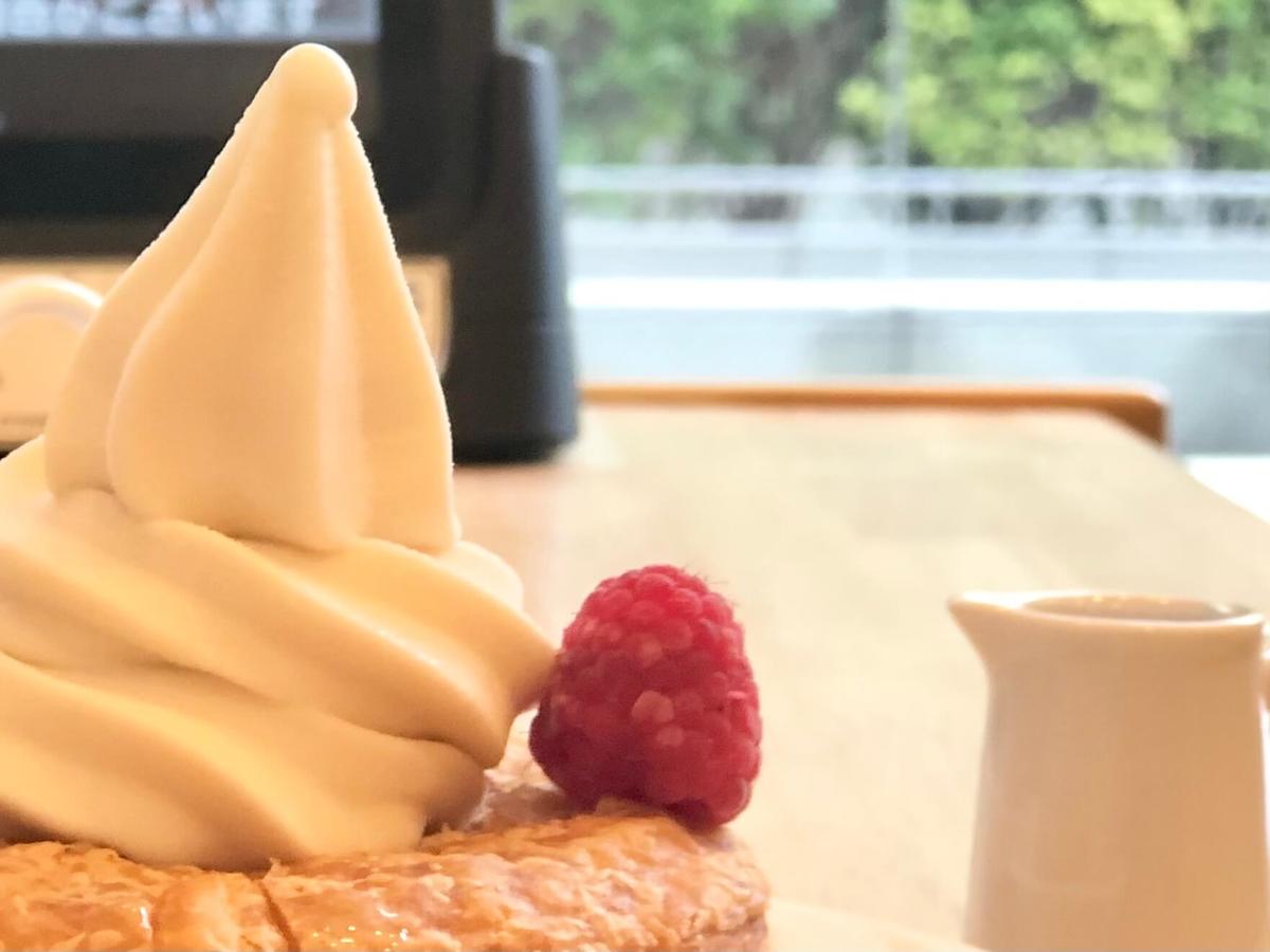 定番のシロノワールと全く同じ味ではありませんが、シロノワールの基であるデニッシュやシロップをほぼ再現し、そこに新しい豆乳やラズベリーをトッピングしたスイーツでした。