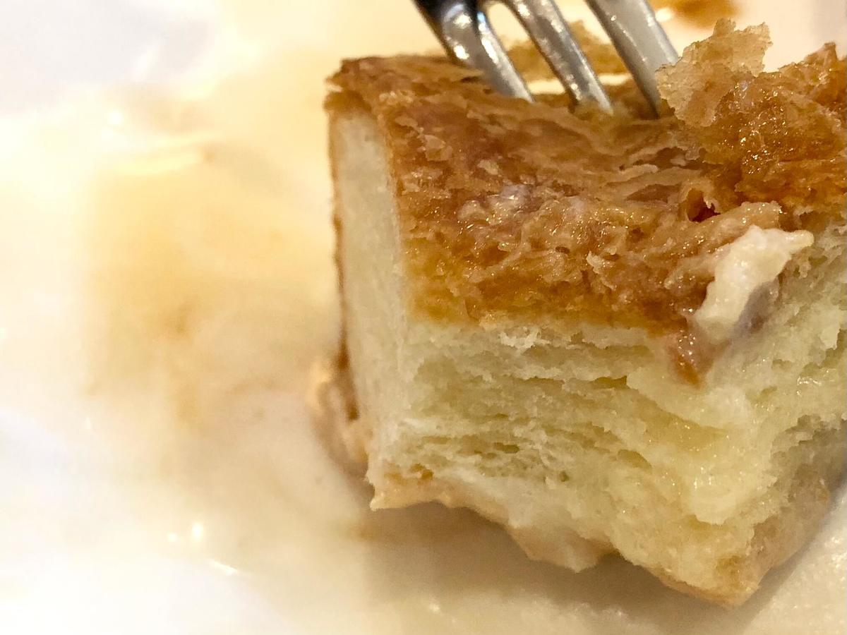 お店の人にお聞きしたところ、プラントベース~で「一番こだわったのはデニッシュ」だといいます。 そもそも、コメダのシロノワールで使われているデニッシュは、驚異の64層で作られています。通常のデニッシュは20~30層なので、倍以上も違いがあるんです!