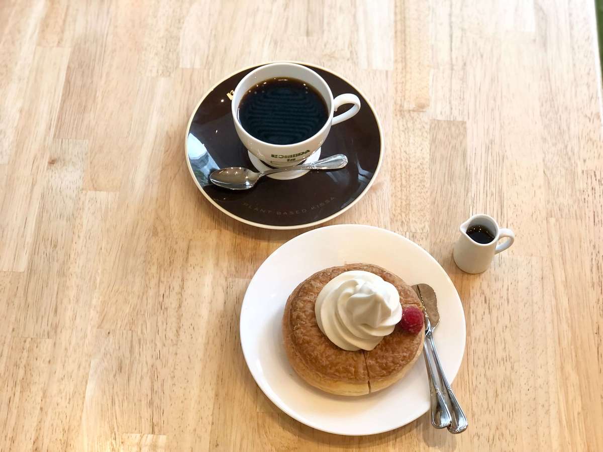 通常のシロノワールではさくらんぼが添えられていますが、プラントベース~ではラズベリーでした。 さくらんぼ自体は植物性ですが、使われているシロップが動物性のためラズベリーに変更したそうです。