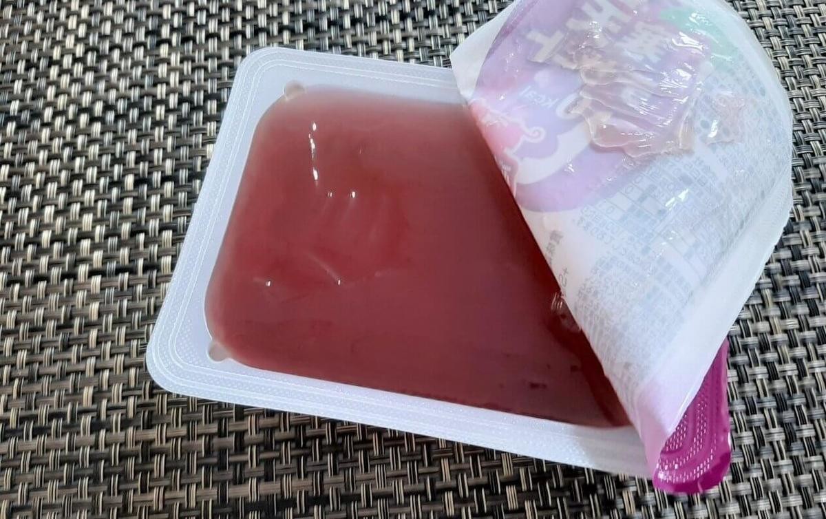 こちらが今回紹介する寒天デザートです。お豆腐みたいなパックに入っています。