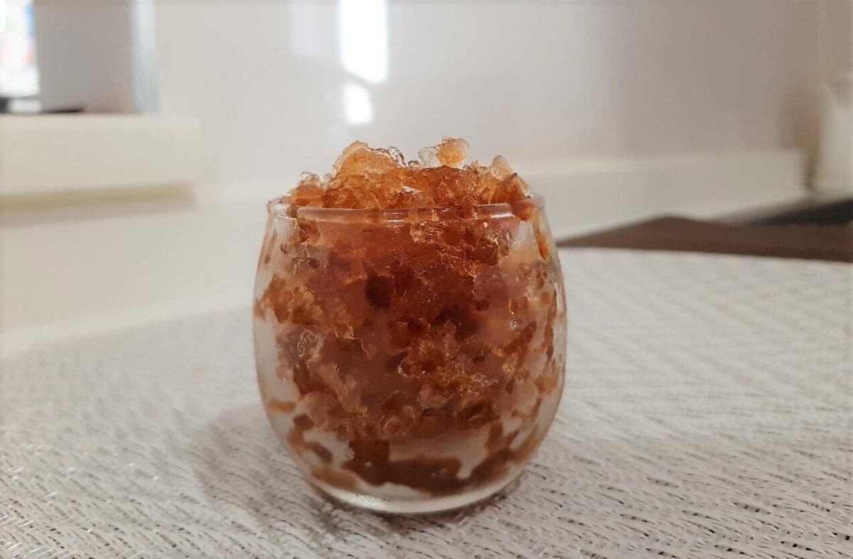 こちらはコーヒー寒天を凍らせたもの。かき氷機に入れてみました。