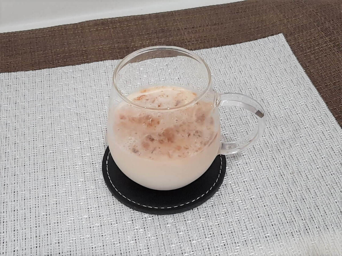 味はおいしいのですが、飲んだときに寒天の塊が残って気になります。凍らせることで水分と寒天が分離したような感じに……。最後に謎の塊だけが牛乳にのこって大変でした。