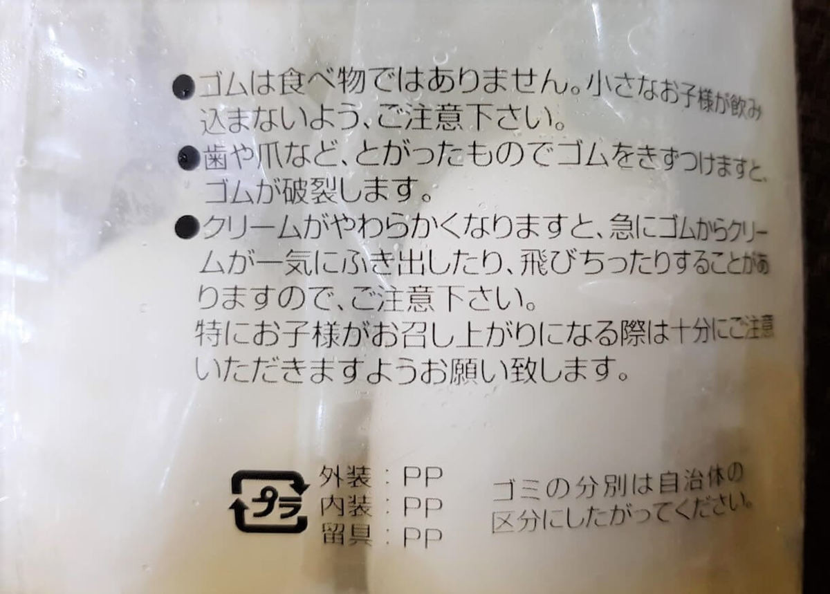 独特の食べ方なので注意書きもありました。食べ終わった後のゴムはとっても小さくなるので飲みこまないように注意してください。