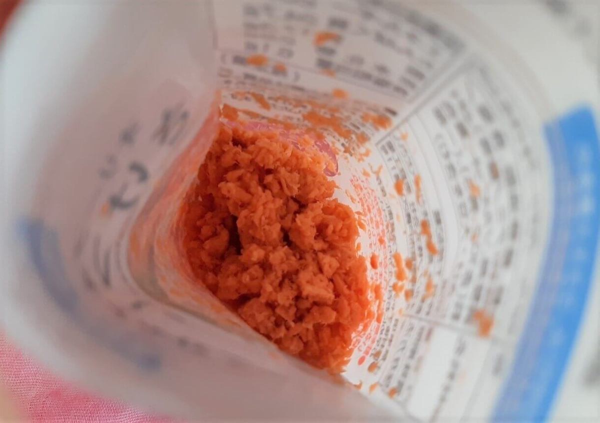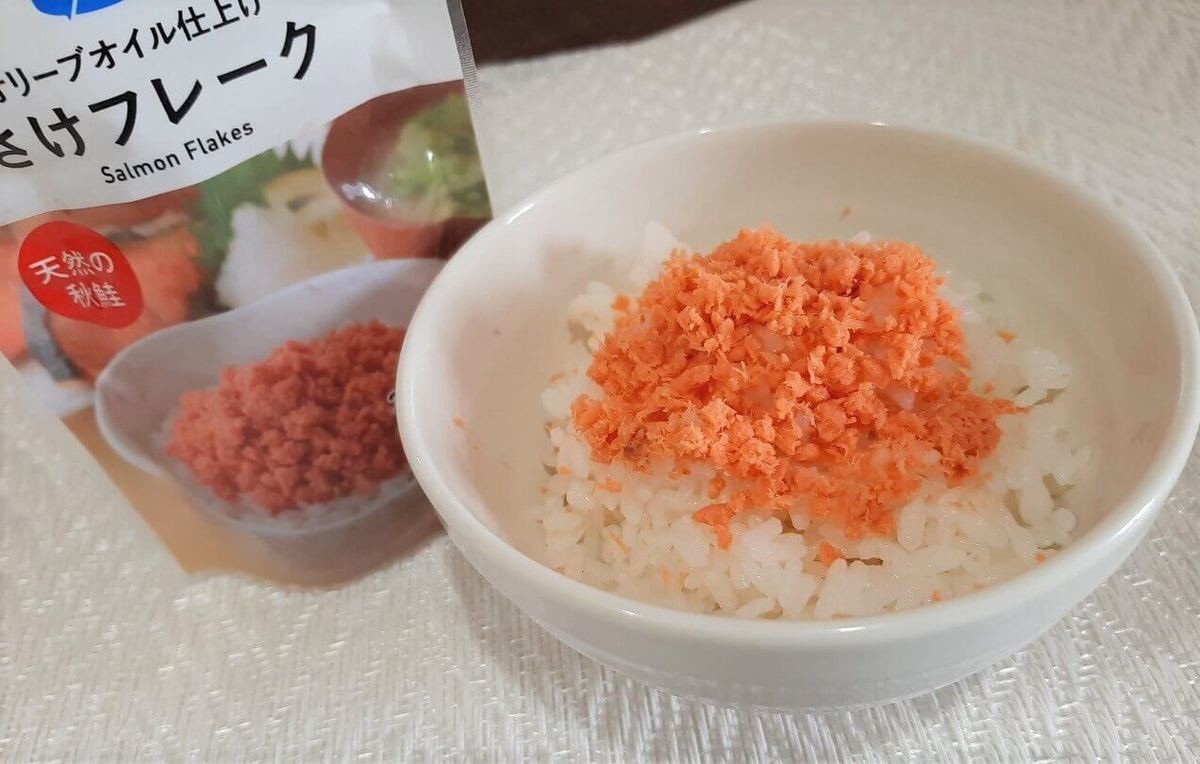 ホロホロと小さめのさけフレークなので食べやすい。味はほどよく塩気がついています。