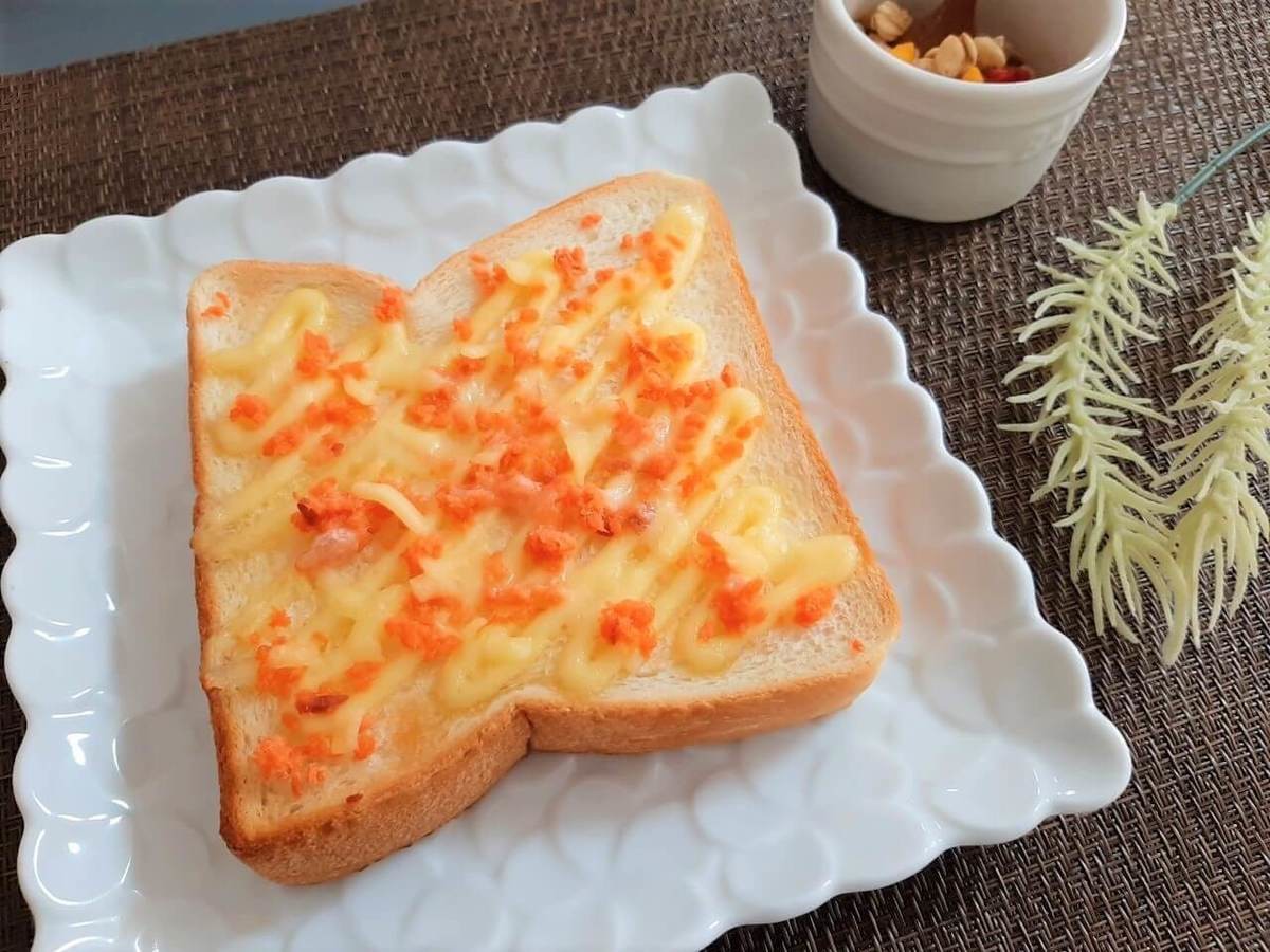 食パンにマヨネーズ、さけフレーク、チーズをのせて焼くだけの簡単アレンジですが朝食にもぴったりです。