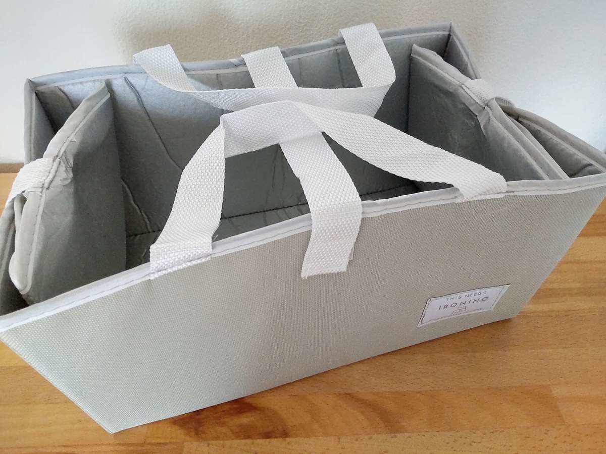 持ち手がありますが、アイロンを入れて引っ掛けて収納するのはおすすめしません。