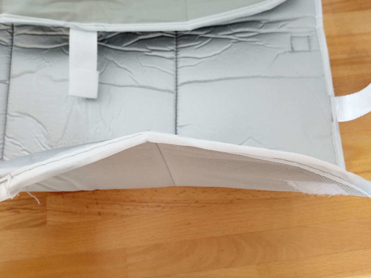 マットに折り目がついているので、そのまま折ってペタッとマジックテープを留めるだけ。数秒程度で組み立て完了です。