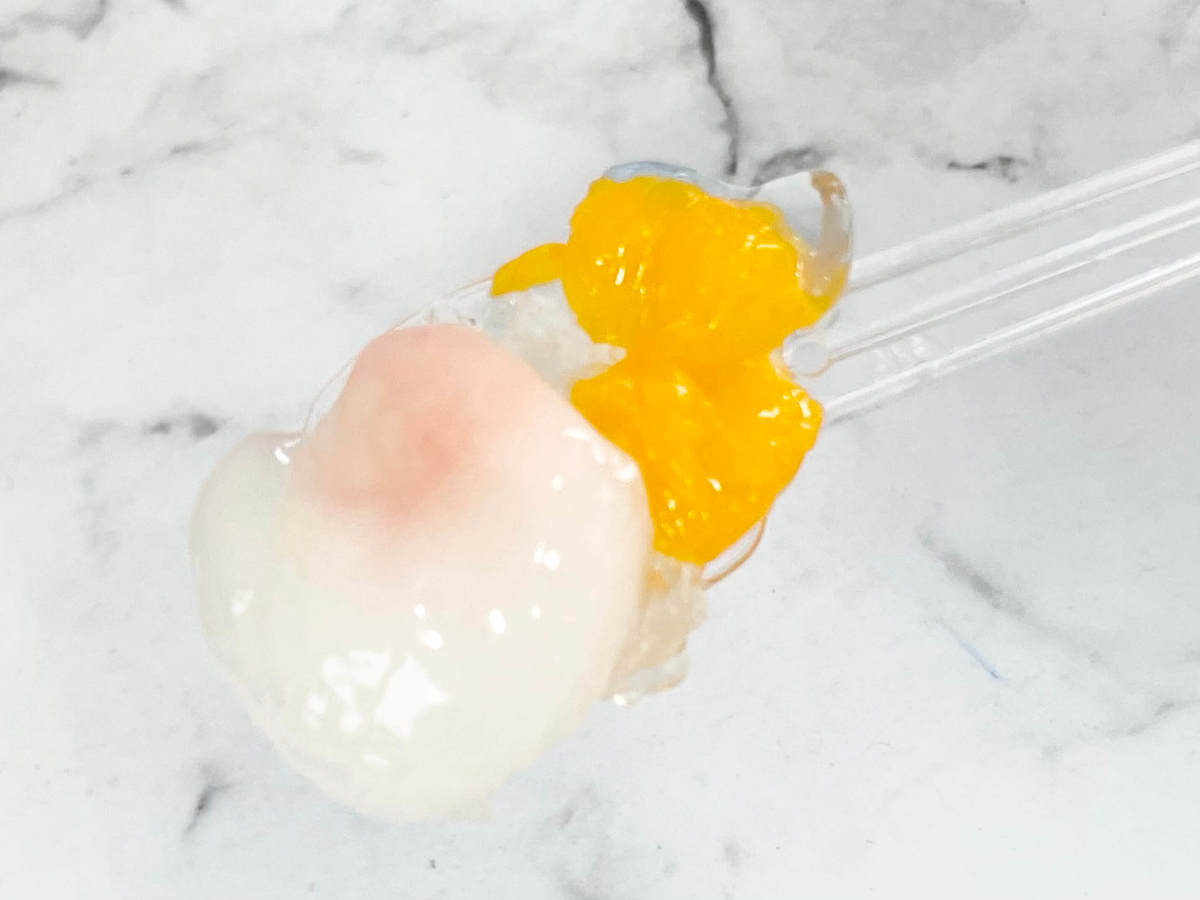 中にはラムネ風味ゼリーより硬い寒天ゼリーが入っています。