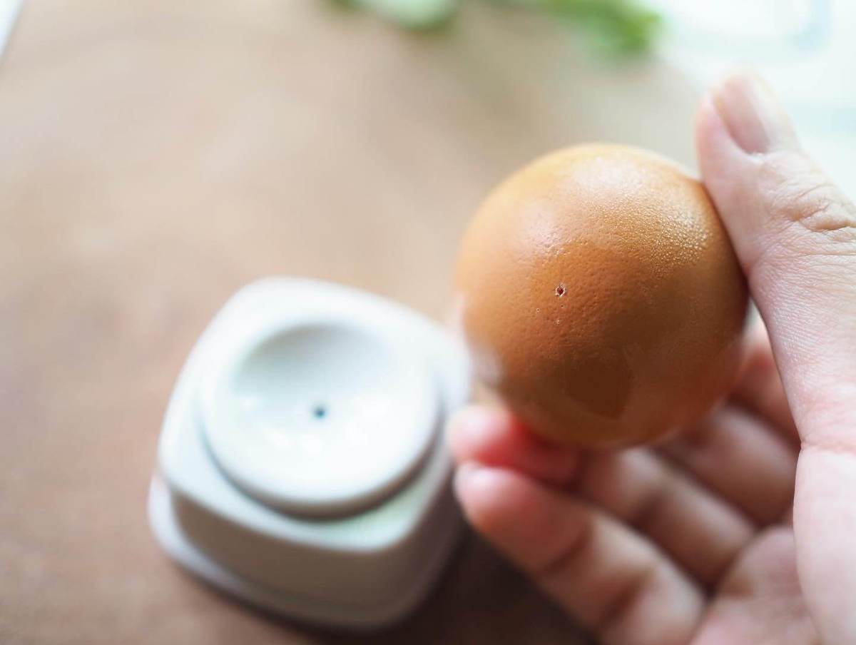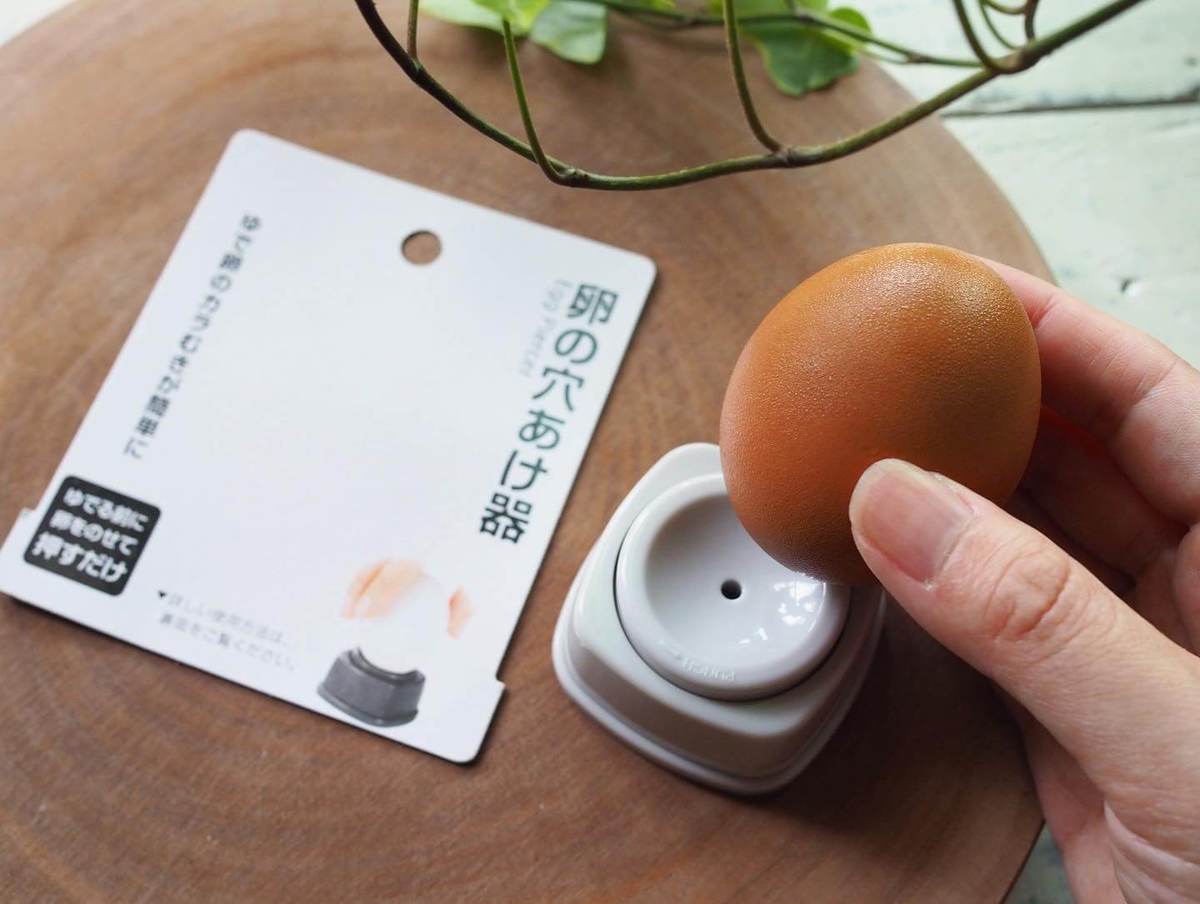 茹でる前の卵に押し付けるだけで小さな針穴が開けられるので、ゆで上がったあとの卵の殻が剥きやすくなるという便利アイテム!
