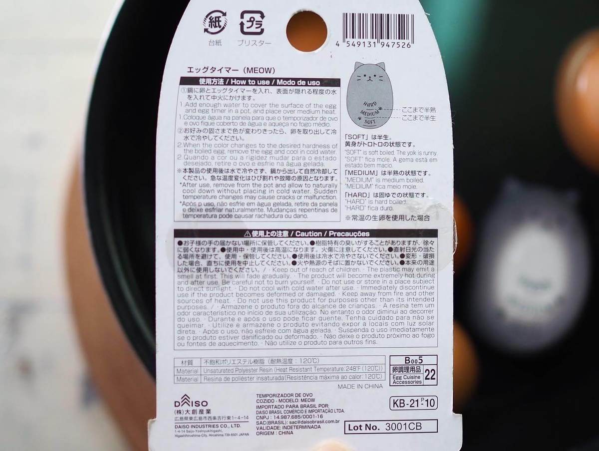 ちなみにエッグタイマーは、キッチン雑貨店やネット通販では1,000円前後で販売されているので、ワンコインで手に入るのは驚きです。