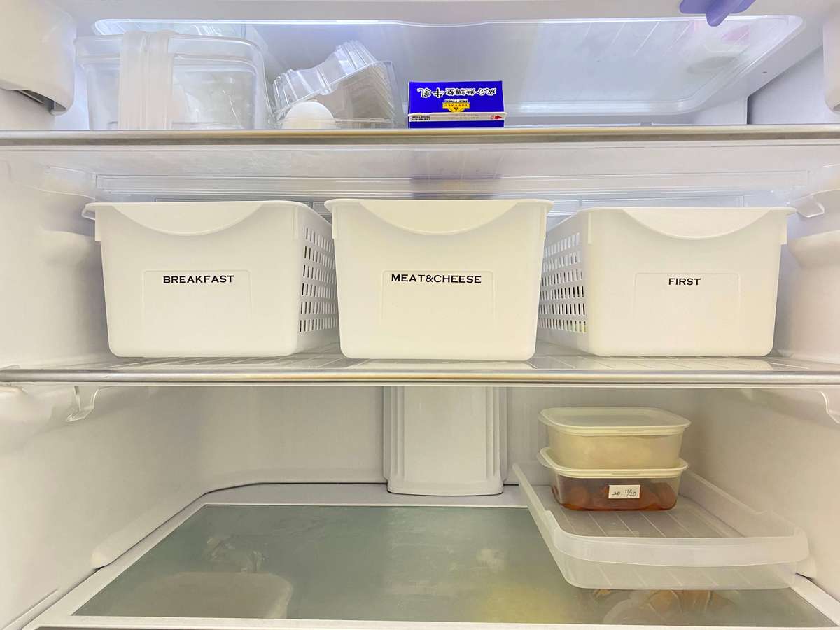 中段右側にある「FIRST」と書かれたBOXは、もうすぐ賞味期限が切れる物や、もともと賞味期限の短い豆腐やちくわなどを入れています。