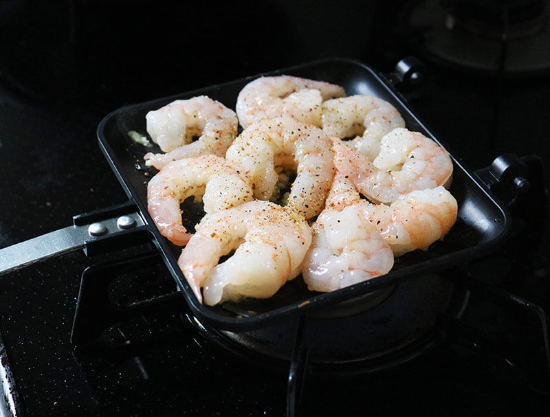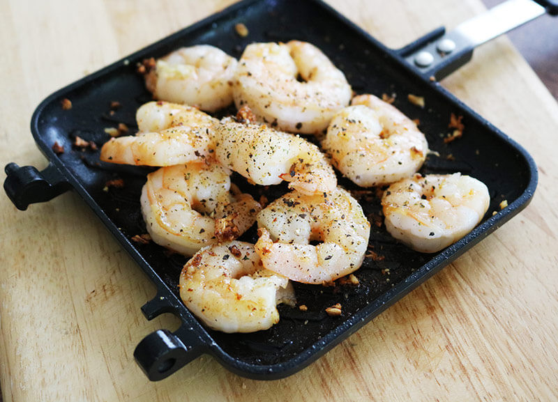 あっという間に食欲そそるガーリックシュリンプが完成。