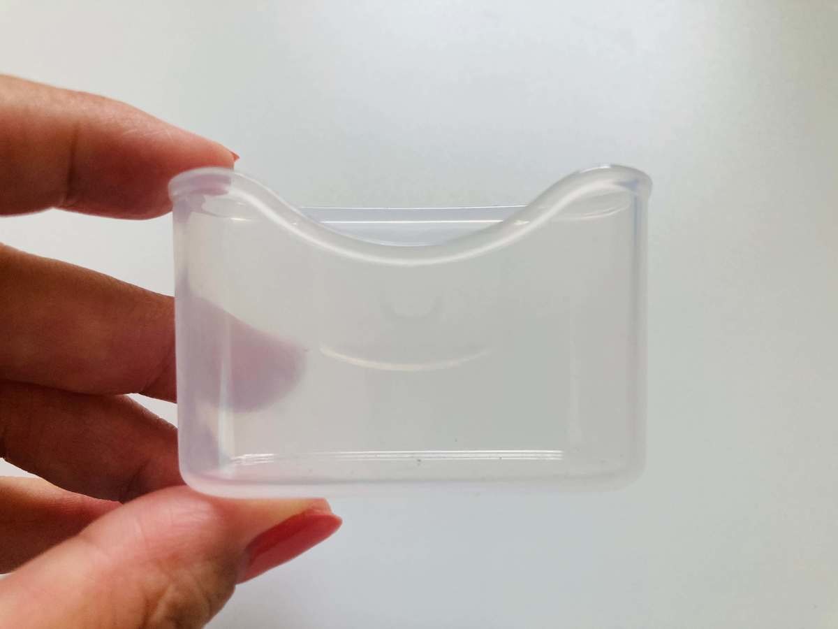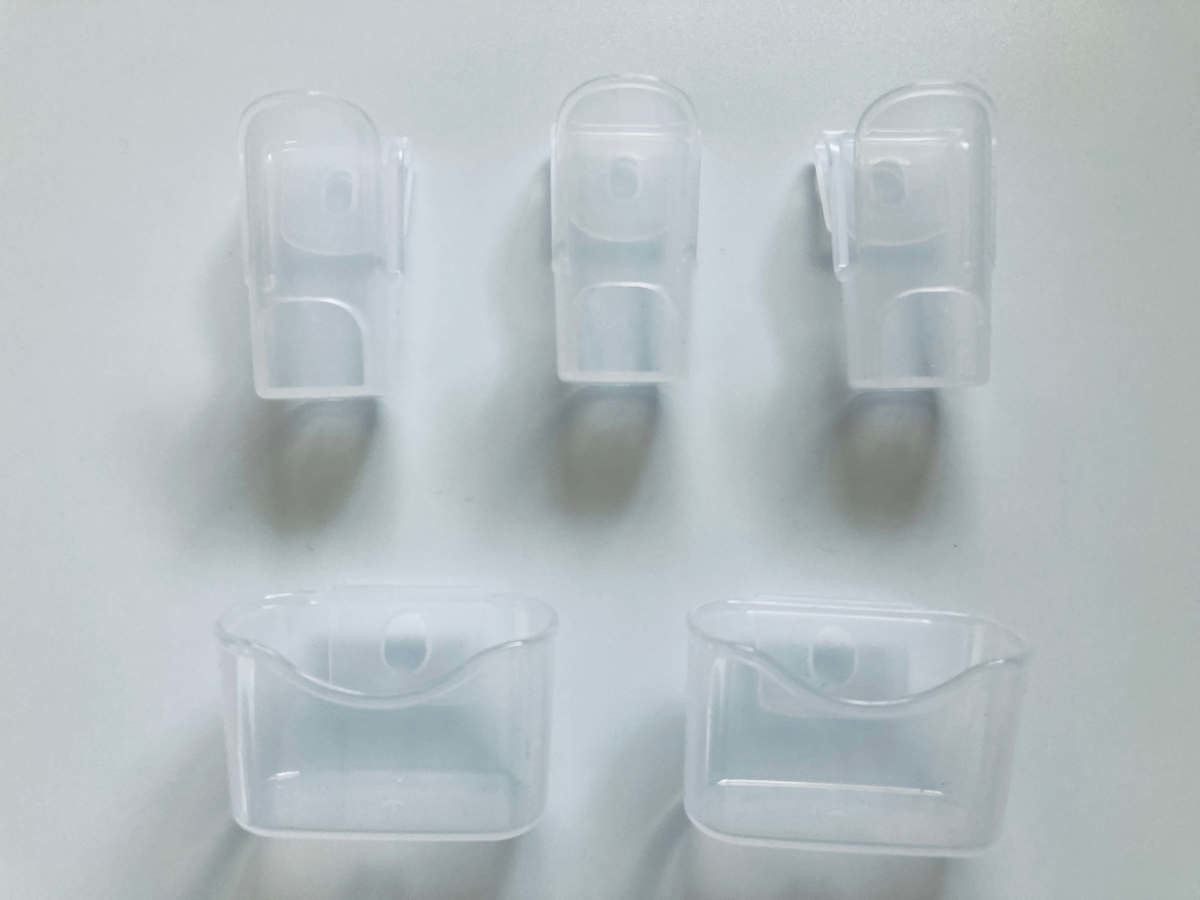 薬味チューブホルダーは3個セットです。キャップを下向きに入れれば縦に保管でき、裏側にはホルダーに引っかけられるクリップが付いています。