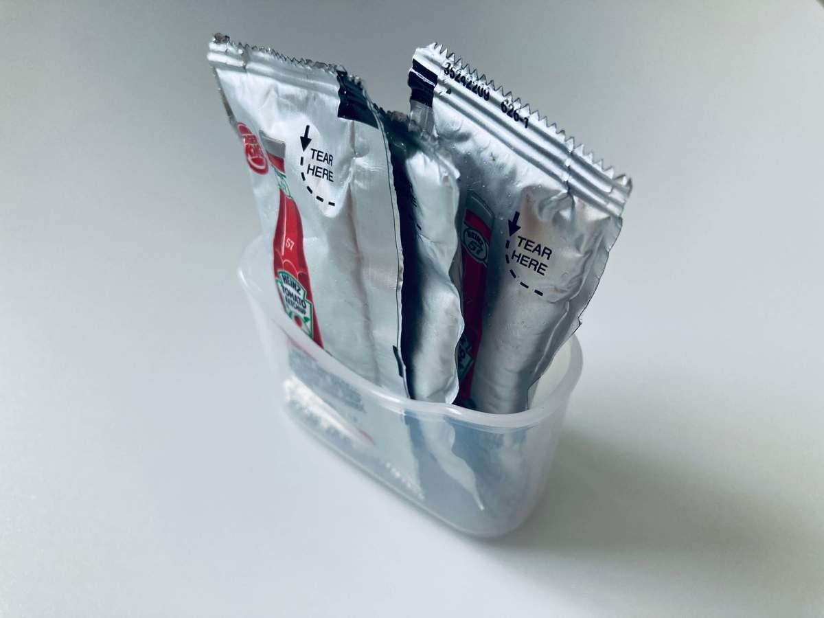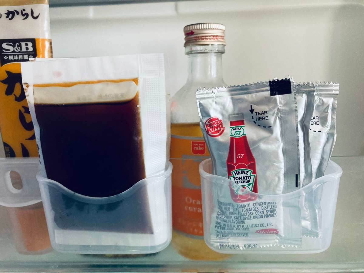 手前が少しカーブになっているので、からしなどの小さな袋でも取り出しやすいです。