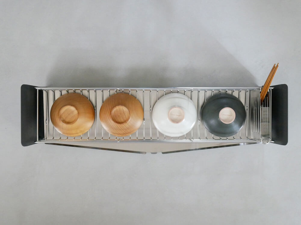 よく使うお椀がピッタリ収まるサイズの「水切りラック」。
