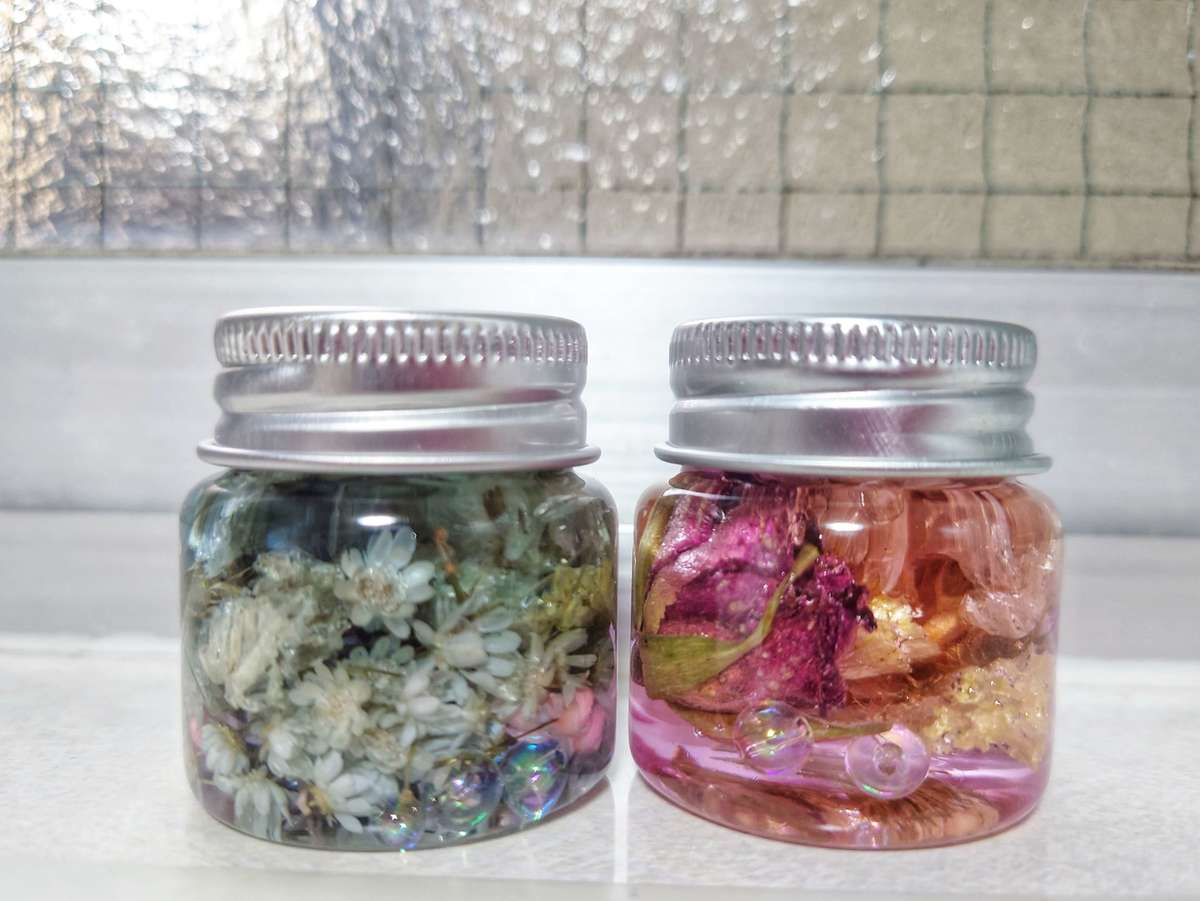 オイルに浮かぶ花はどこか幻想的で涼しげにも見えます。
