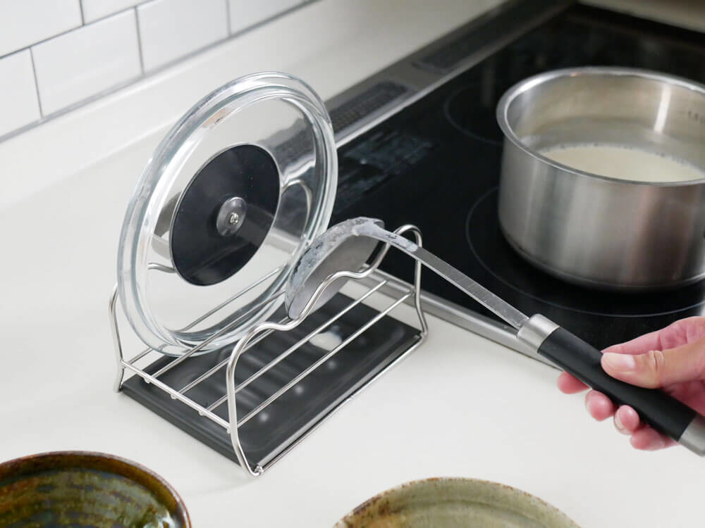 その流れの途中、鍋やおたまを一時置きできる、決められた場所「マルチスタンド」があったら、ちょっとの迷いが無くなり、スムーズに流れるように進みますよね♪