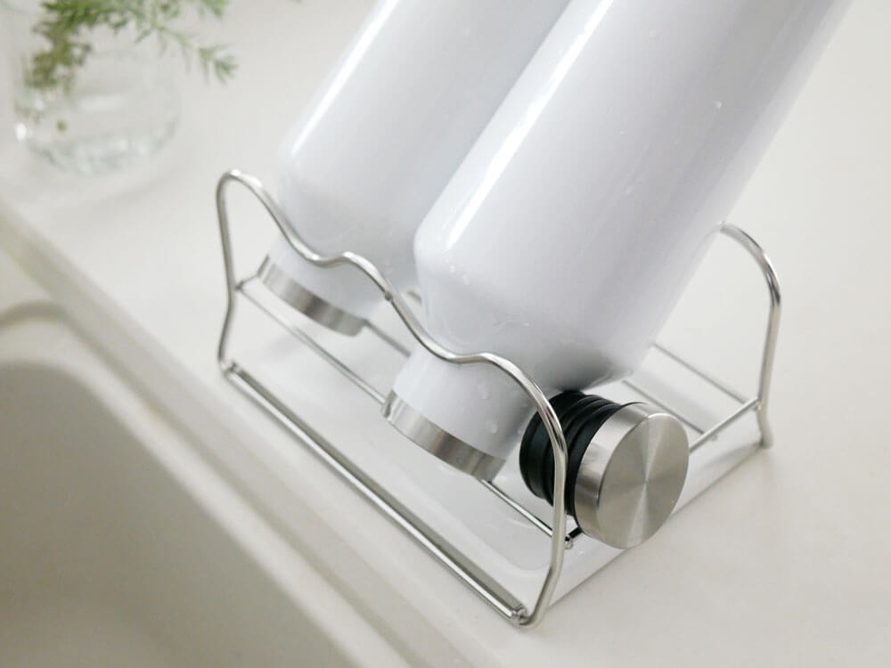 ちょっとした洗い物を乾かすのにも活躍。 水筒やグラス、ペットボトルなどを立て掛けて乾かせたり、細かいお弁当ピックやシリコンカップ、水筒のパッキン、小さな計量カップなどを気軽に置けるのも便利ですね。