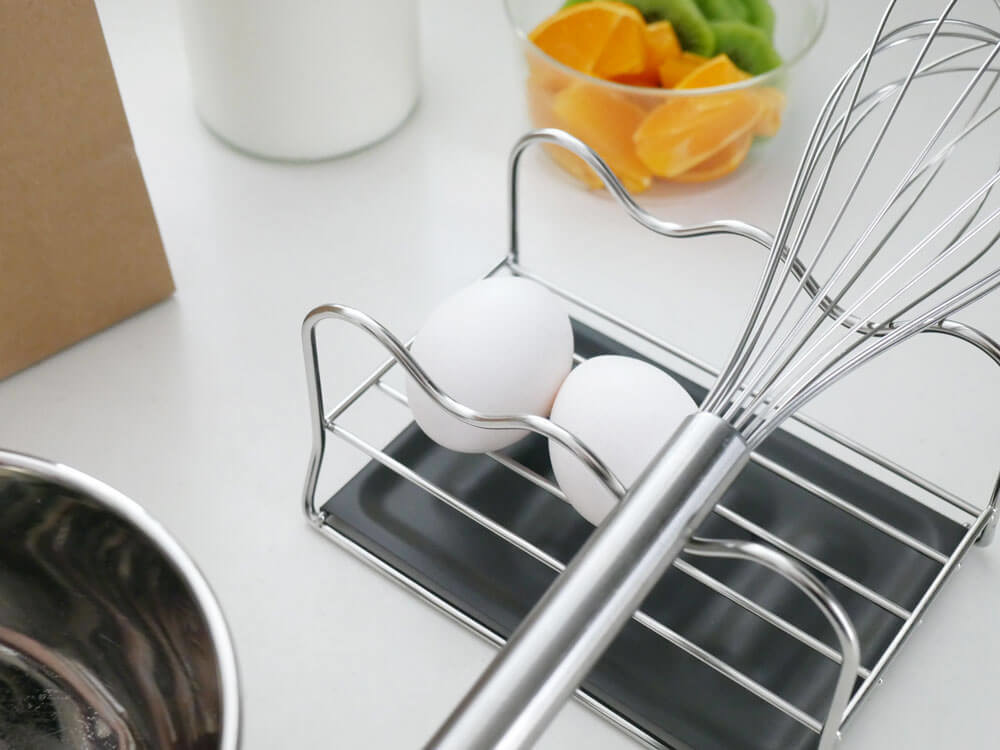 キッチンツールの他にも、たまごの一時置きにも便利。調理台に置いてコロッといく姿に誰もがヒヤッとした経験はあるはず。 また飲食後の空き缶やペットボトル、スポンジ置き場や絵の具・習字の洗った後の筆を置いてもOK。 邪魔にならずにシンク周りに置け、気軽に移動できるコンパクトなサイズ感も◎。