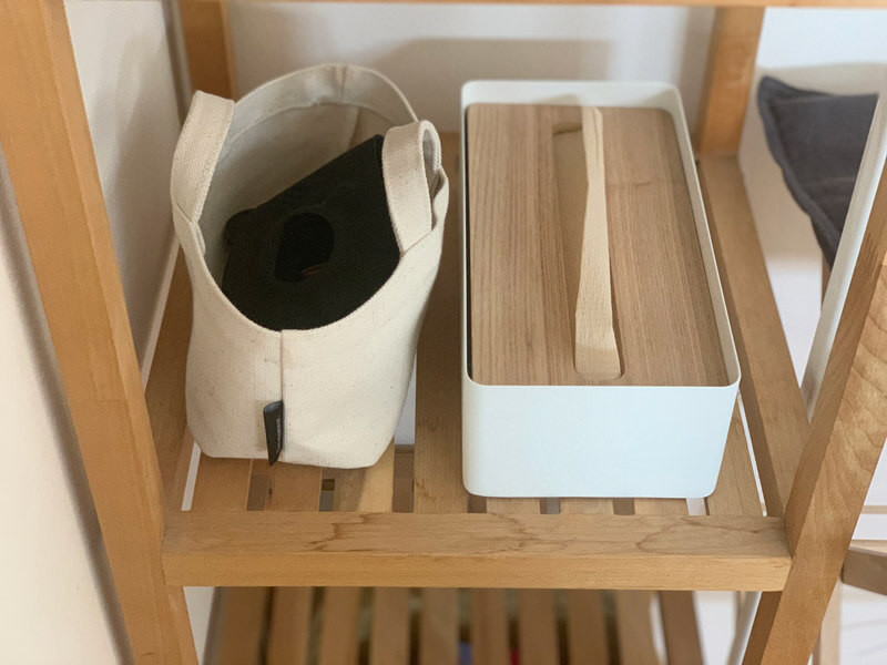 小さなトート収納は、持ち運びできる気軽さを味方に付けてフル活用します。