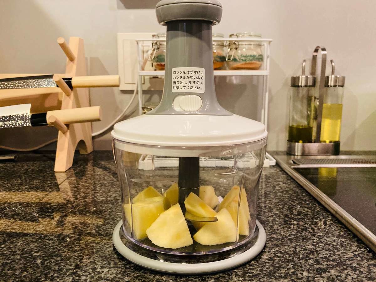 ぶんぶんチョッパーで刻む場合は10回程引っ張るとちょうどいい大きさに!